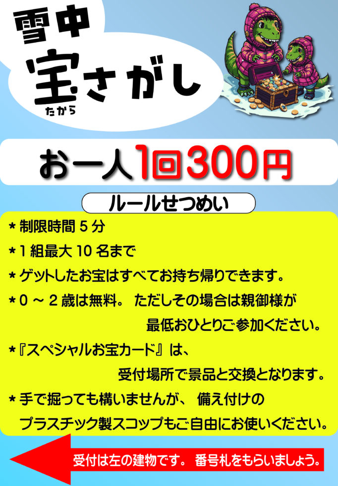 2/8の朝10時より、スノーランドエリアにてイベント『雪中宝さがし』が行われます。